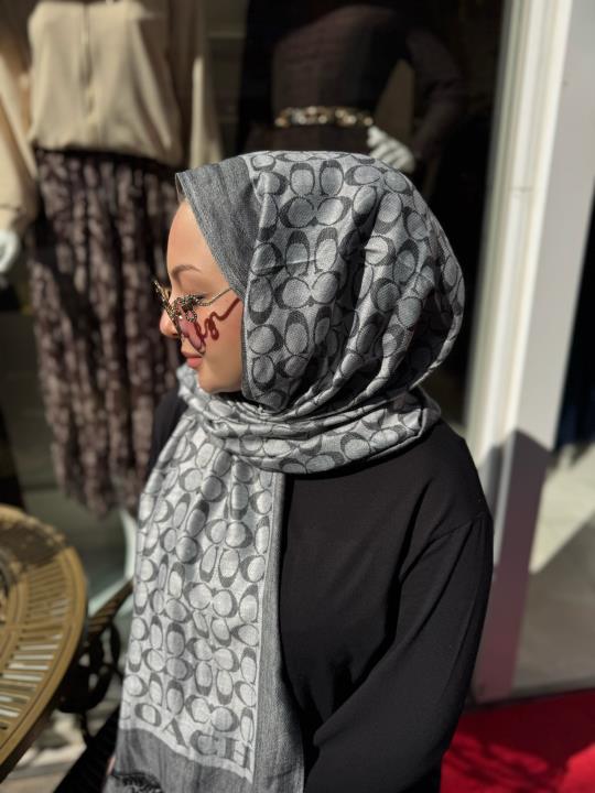 Coach Yerli Yün İpek Şal Siyah Gri