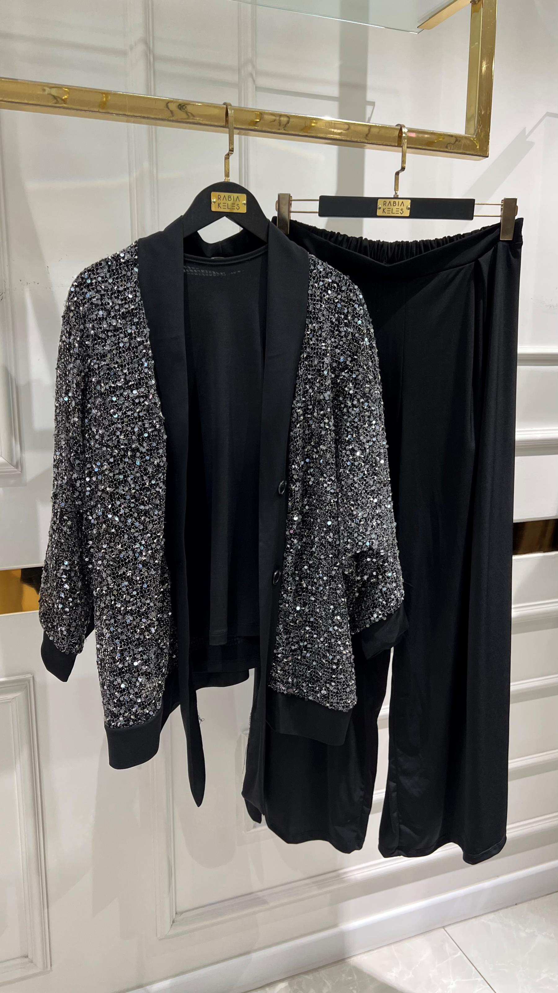 Payetli Jess Takım Siyah